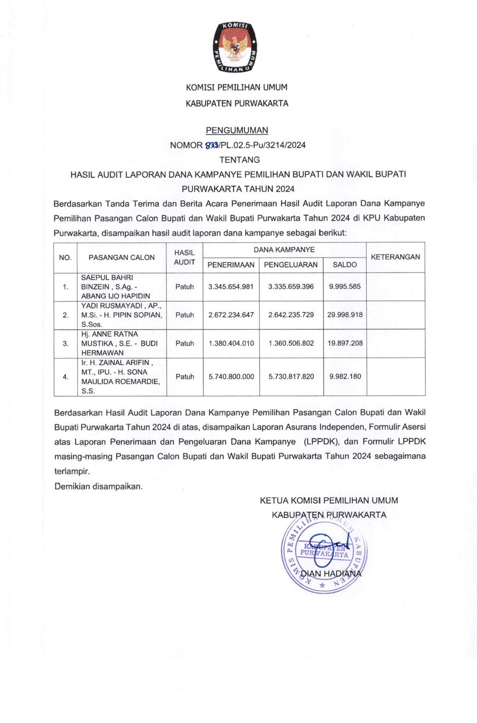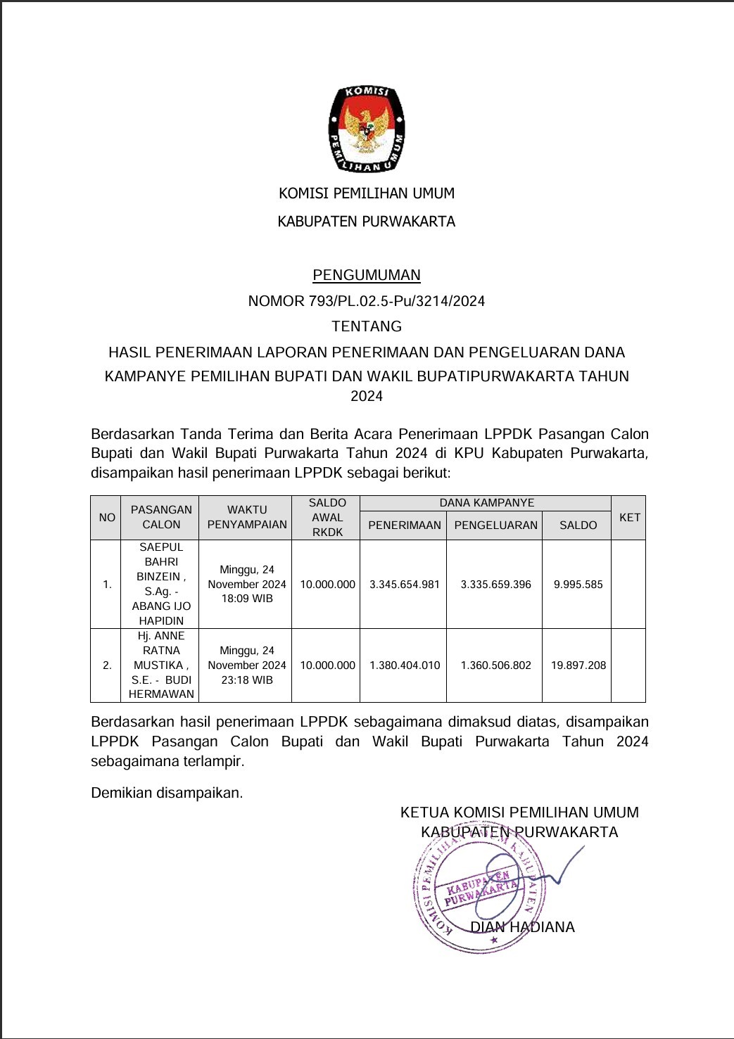 Bapak Deni Ahmad Haedar (Ketua KPU Kabupaten Purwakarta 2013-2018)