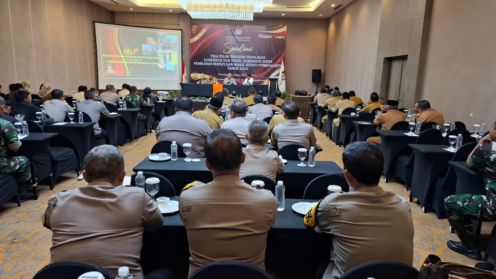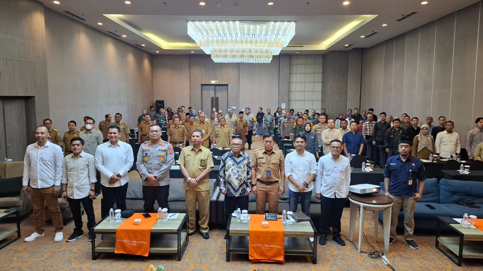 Dalam kegiatan ini dihadiri tiga pilar meliputi unsur pemerintahan, TNI/Polri dan Ketua PPK di 17 kecamatan di Kabupaten Purwakarta.