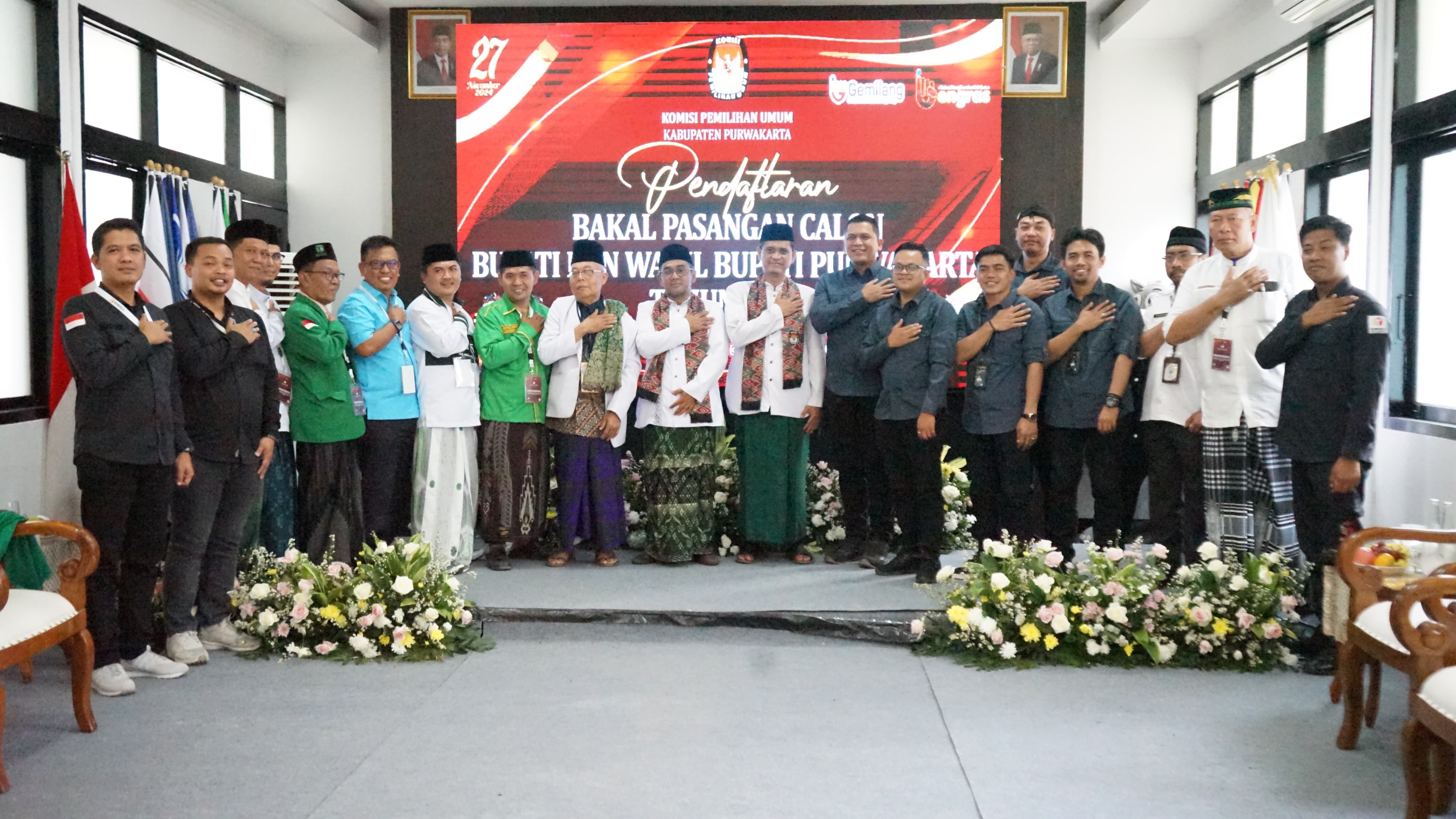 Pasangan calon diusung Partai Kebangkitan Bangsa, Partai Persatuan Pembangunan dan Gelora tersebut tiba di Kantor KPU Purwakarta pukul 14.16 WIB.