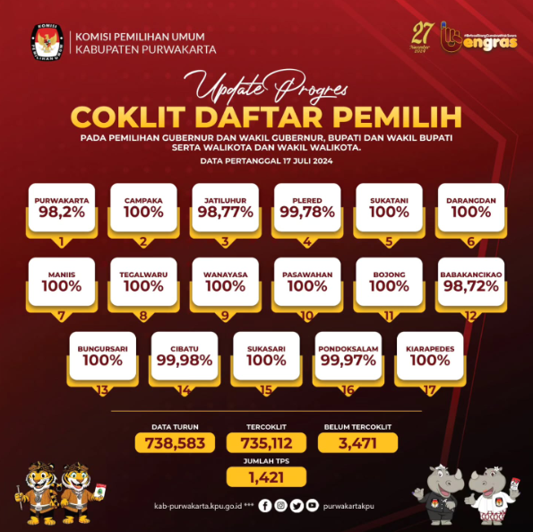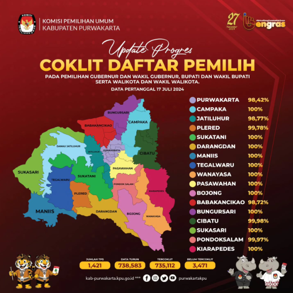 #TemanPemilih berikut update Coklit Daftar Pemilih pada Pemilihan Gubernur dan Wakil Gubernur Jawa Barat, Bupati dan Wakil Bupati Purwakarta tahun 2024, Data pertanggal 17 Juli 2024.