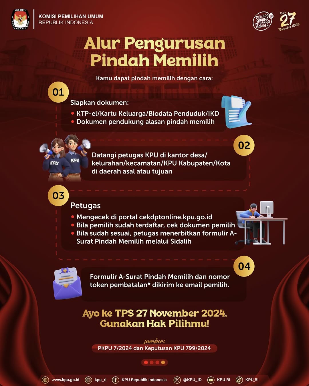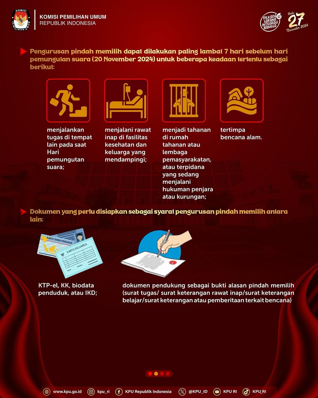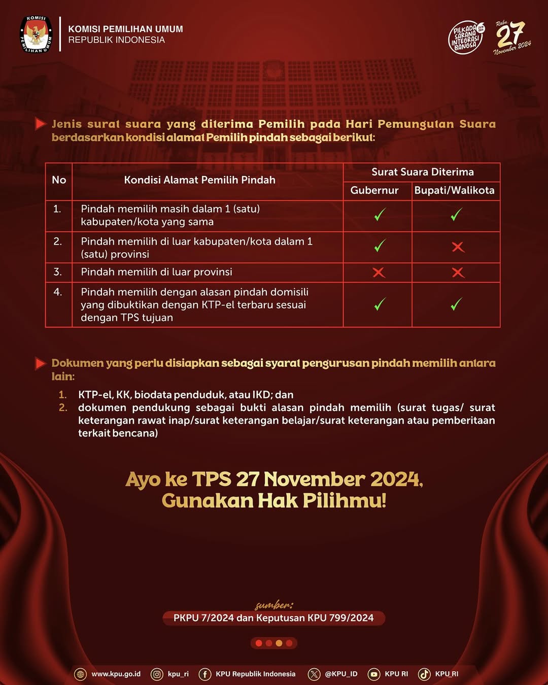 #TemanPemilih Repost @kpu_ri ... Berikut Ketentuan Pindah Memilih pada Pilkada 2024, informasi lebih lengkap cek infografis berikut yaa..