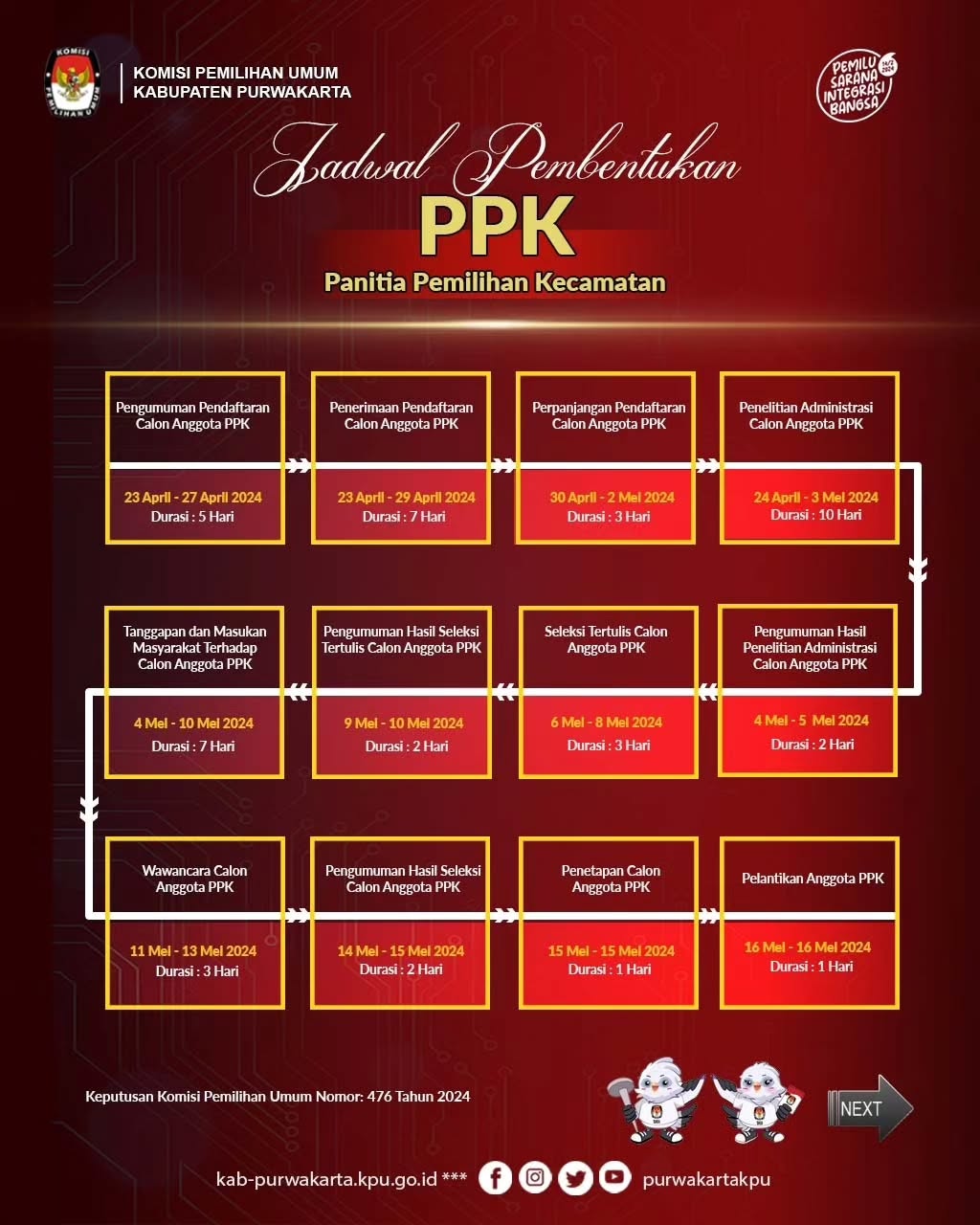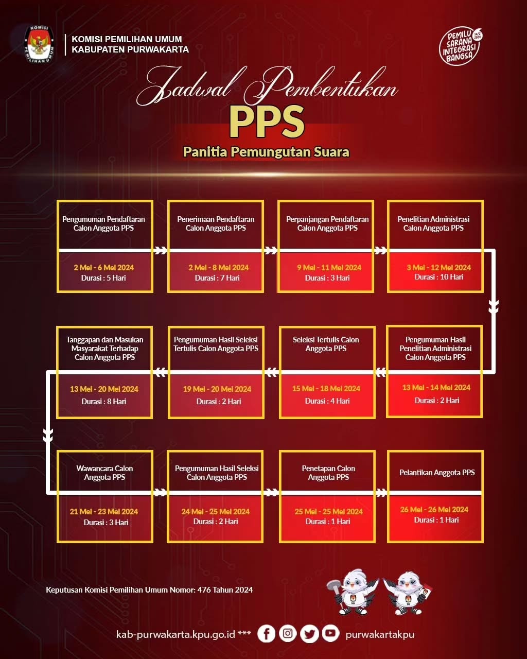 #TemanPemilih berikut kami sampaikan Tahapan dan Jadwal Pembentukan Penyelenggara Badan Adhoc PPK dan PPS dalam penyelenggaraan Pemilihan Bupati dan Wakil Bupati Kabupaten Purwakarta tahun 2024