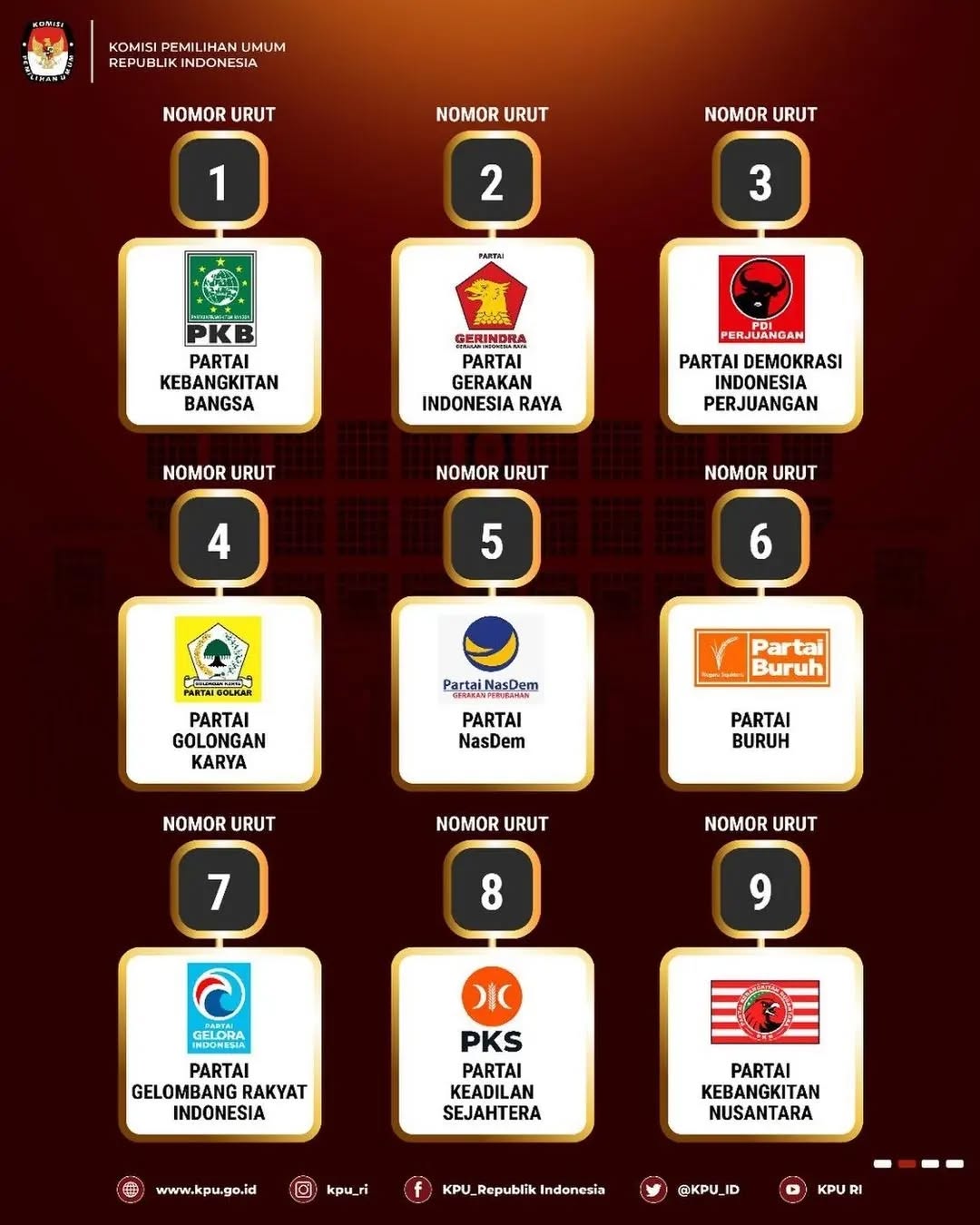 Nomor Urut Partai Politik Peserta Pemilu Tahun 2024