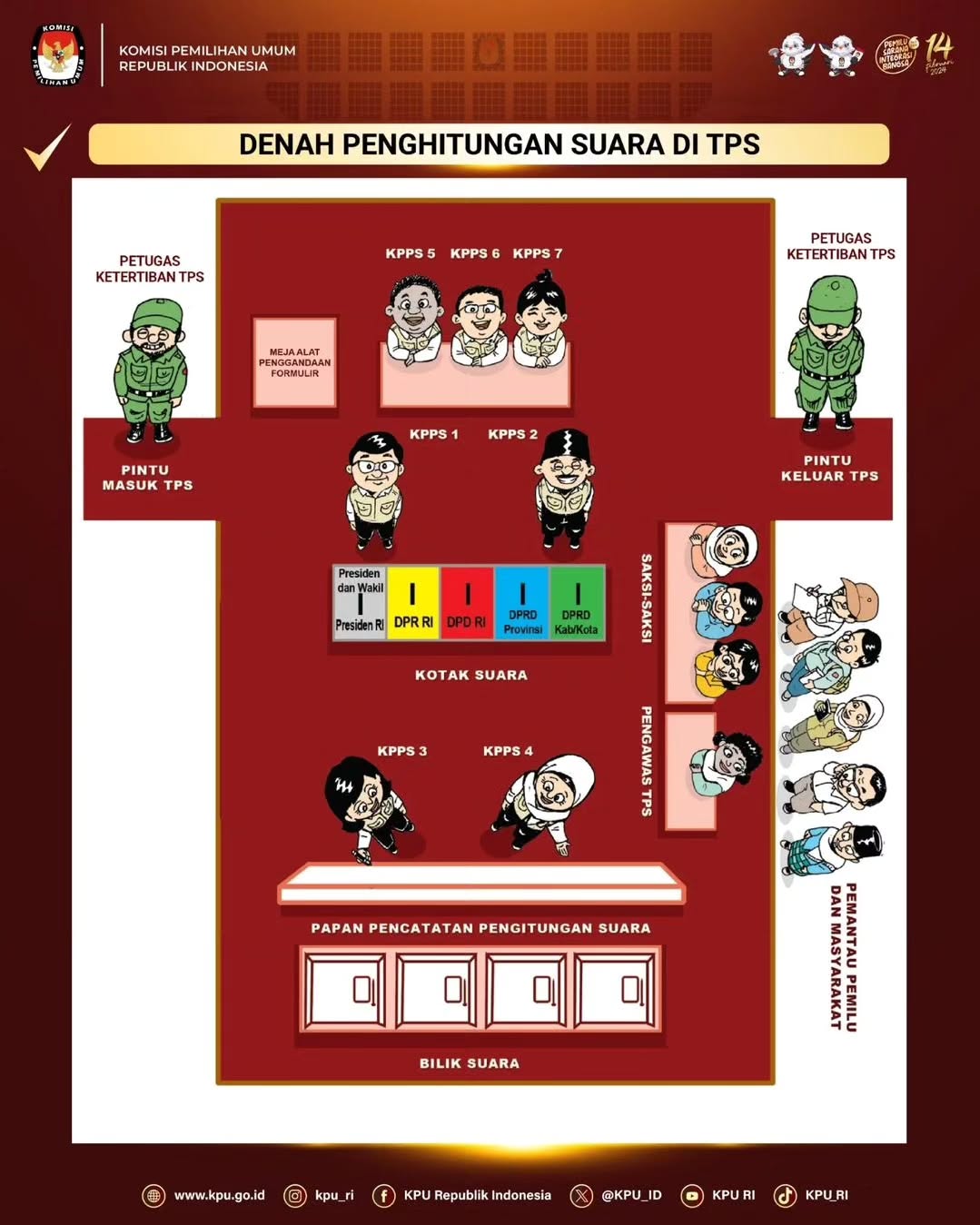#TemanPemilih, kamu perlu tau, inilah Denah Tempat Pemungutan Suara (TPS), Denah Penghitungan Suara di (TPS) dan Denah Tempat Pemungutan Suara Luar Negeri (TPSLN).