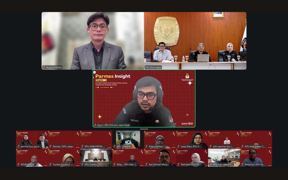 Purwakarta — KPU Kabupaten Purwakarta mengikuti kegiatan Parmas Insight Chapter #1 yang diselenggarakan oleh KPU Provinsi Jawa Barat secara daring pada Rabu (8/10/2025). Kegiatan ini mengangkat tema “Partisipasi Pilkada 2024: Faktor Pendorong dan Penghambat Partisipasi Pemilih.”