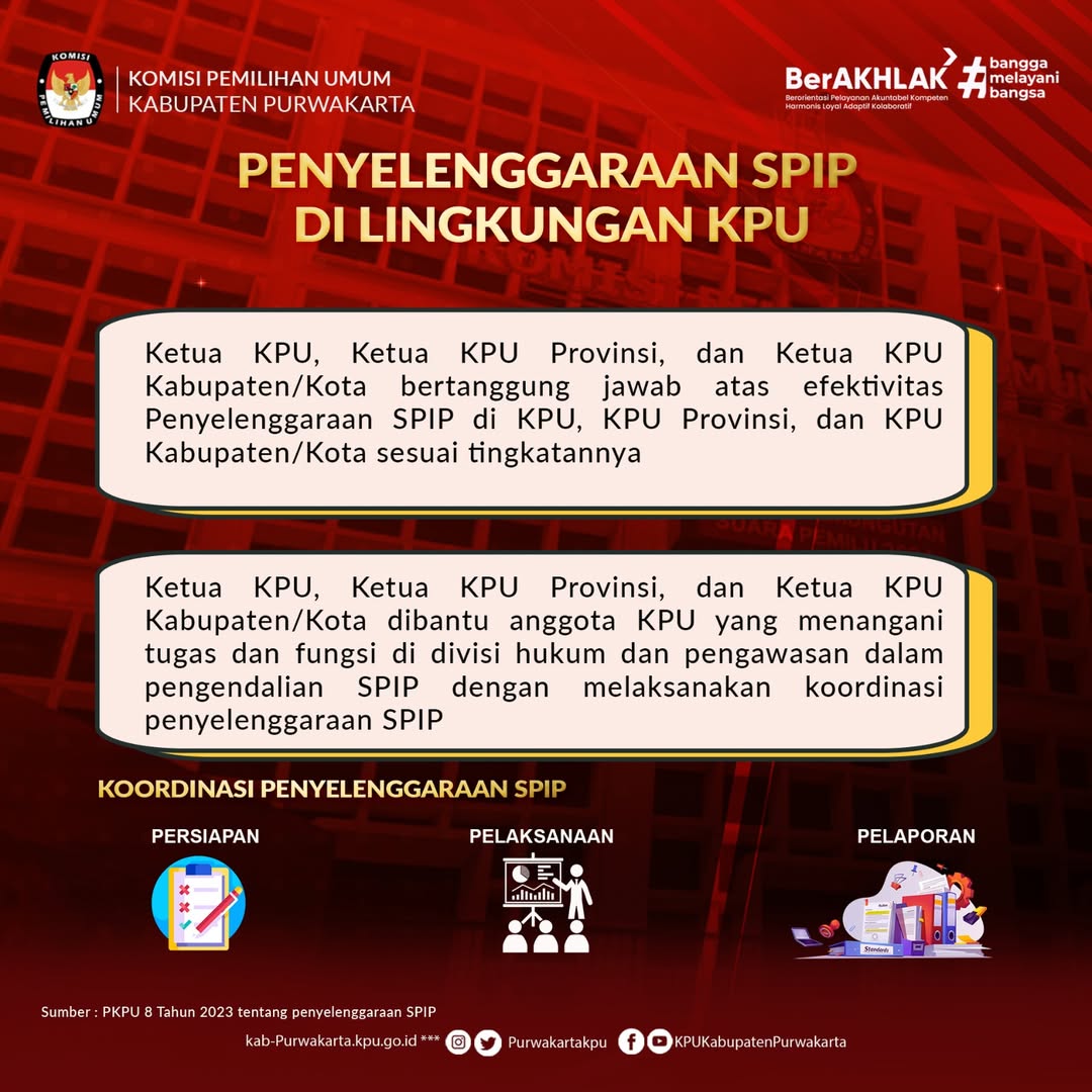 #TemanPemilih Dalam rangka memperkuat tata kelola kelembagaan, KPU Kabupaten Purwakarta melaksanakan Sistem Pengendalian Intern Pemerintah (SPIP).