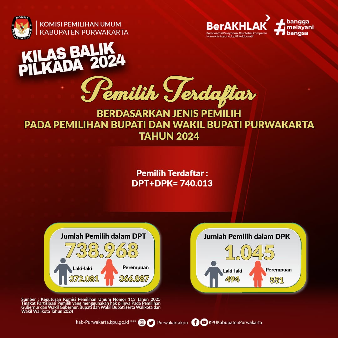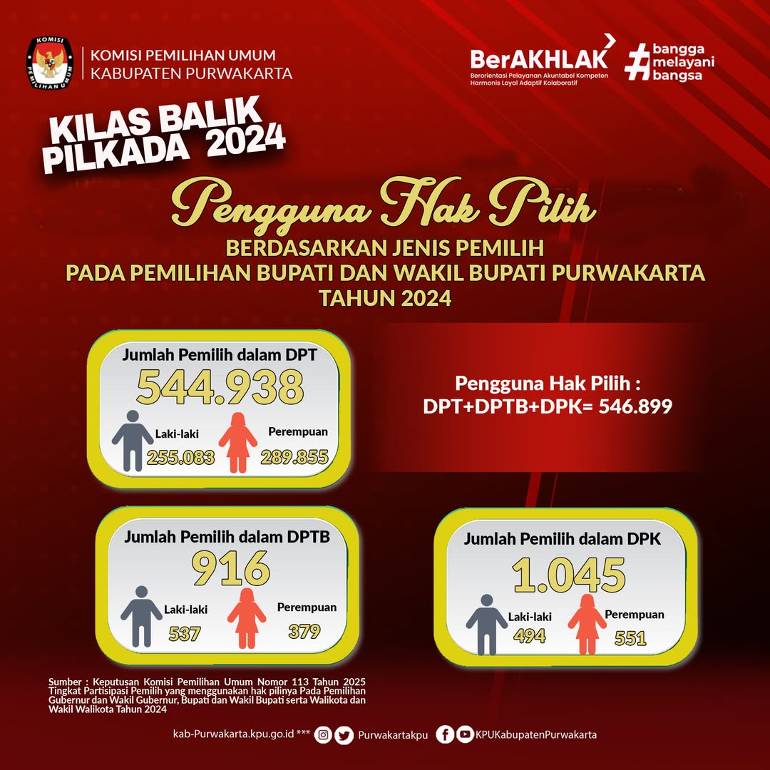 #TemanPemilih Berikut kilas balik Pilkada 2024, Tingkat Partisipasi Pemilih pada Pemilihan Bupati dan Wakil Bupati Purwakarta Tahun 2024;