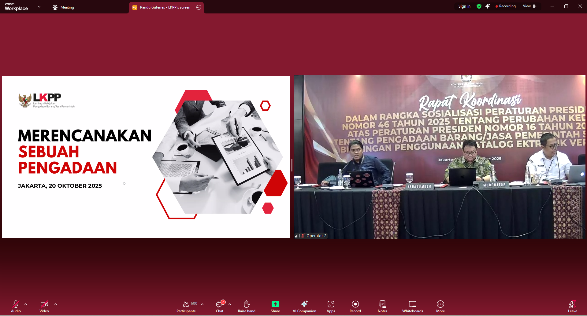 Ia menambahkan, Perpres Nomor 46 Tahun 2025 menjadi langkah strategis dalam memperkuat dasar hukum pengadaan yang adaptif terhadap transformasi digital, sekaligus mendorong percepatan penggunaan Katalog Elektronik Versi 6 untuk memperluas akses produk dalam negeri dan meningkatkan partisipasi UMK-Koperasi.