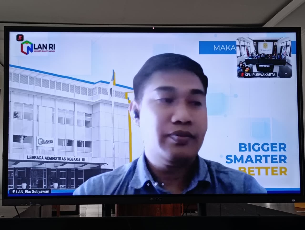Eko menjelaskan bahwa orientasi PPPK terbagi menjadi dua jenis, yaitu Pengenalan Fungsi dan Tugas ASN yang diselenggarakan oleh LAN secara daring melalui sistem MOOC, serta Pengenalan Nilai dan Etika pada Instansi Pemerintah yang dilaksanakan oleh instansi tempat PPPK bertugas. Ia juga memaparkan alur pelaksanaan orientasi melalui platform sibangkom.lan.go.id, mulai dari proses login, akses materi, unggah jurnal, hingga penerbitan e-sertifikat. Kegiatan ditutup dengan penyampaian kesimpulan oleh Dinuk, perwakilan dari Biro Pengembangan Kompetensi SDM (PKSDM) KPU RI, yang menyampaikan penyesuaian jadwal orientasi karena adanya proses maintenance sistem LAN.