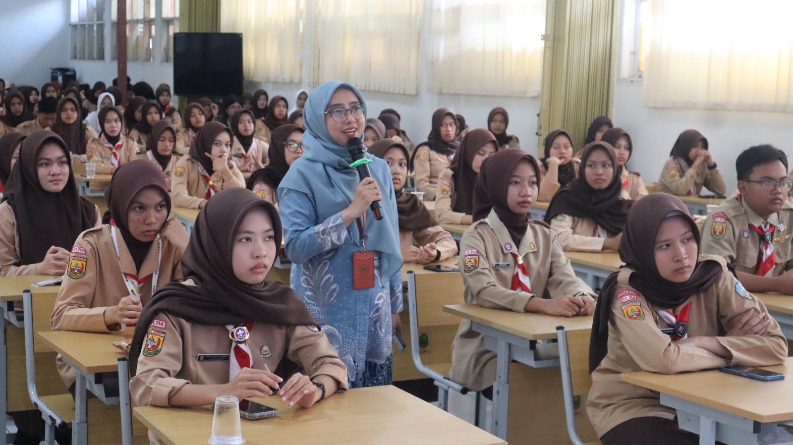 Sesi materi disampaikan oleh Rima Nurmalina, Kepala Subbagian Partisipasi, Humas dan SDM KPU Purwakarta, yang membahas pengertian Pemilu, prinsip luber dan jurdil, perbedaan Pemilu dan Pilkada, tahapan pemilu, syarat menjadi pemilih, partisipasi pemilih pemula, serta peran penyelenggara Pemilu (KPU, Bawaslu, DKPP). Rima juga memperkenalkan layanan publik kepemiluan seperti cekdptonline.kpu.go.id, layanan PPID, serta kanal media sosial resmi KPU Purwakarta sebagai rujukan informasi terpercaya.
