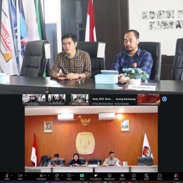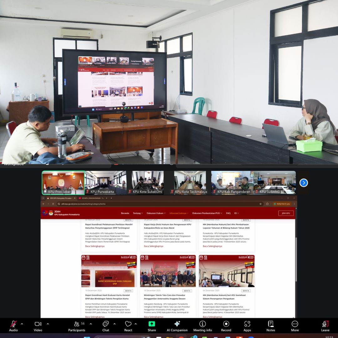 PURWAKARTA — Komisi Pemilihan Umum (KPU) Kabupaten Purwakarta mengikuti Program MH (Membahas Hukum) JDIH KPU Provinsi Jawa Barat Seri #16 yang dilaksanakan secara daring melalui Zoom Meeting pada Kamis (12/2). Kegiatan ini diikuti oleh jajaran bidang hukum KPU Provinsi Jawa Barat serta Ketua Divisi Hukum dan Pengawasan, kasubbag hukum, dan tim pengelola JDIH KPU Kabupaten/Kota se-Jawa Barat.