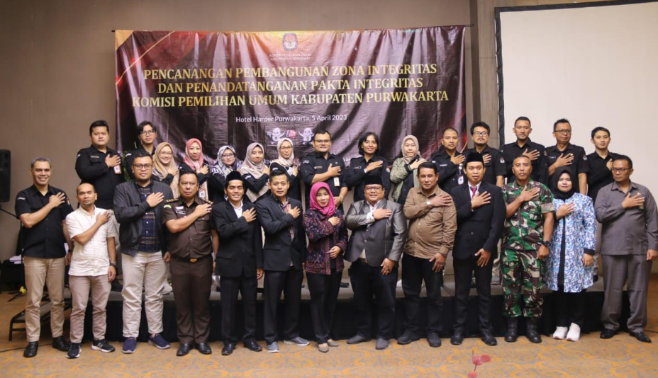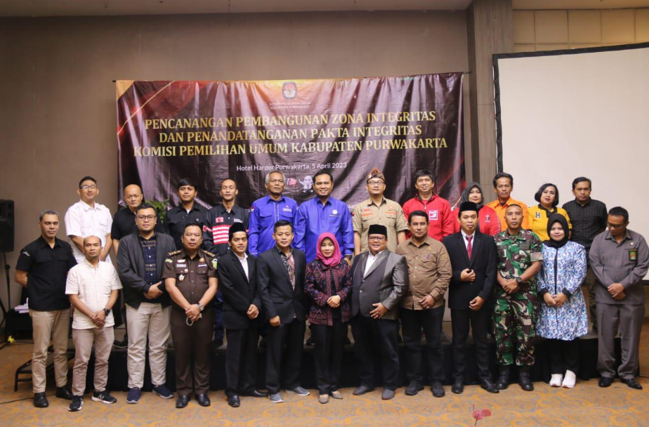 Purwakarta — Komisi Pemilihan Umum (KPU) Kabupaten Purwakarta resmi mencanangkan Zona Integritas menuju Wilayah Bebas dari Korupsi (WBK) dan Wilayah Birokrasi Bersih dan Melayani (WBBM) pada Rabu, 5 April 2023, bertempat di Hotel Harper Purwakarta. Kegiatan ini merupakan bagian dari komitmen KPU Kabupaten Purwakarta sebagai salah satu satuan kerja di Provinsi Jawa Barat dalam mendukung reformasi birokrasi dan peningkatan kualitas layanan publik.