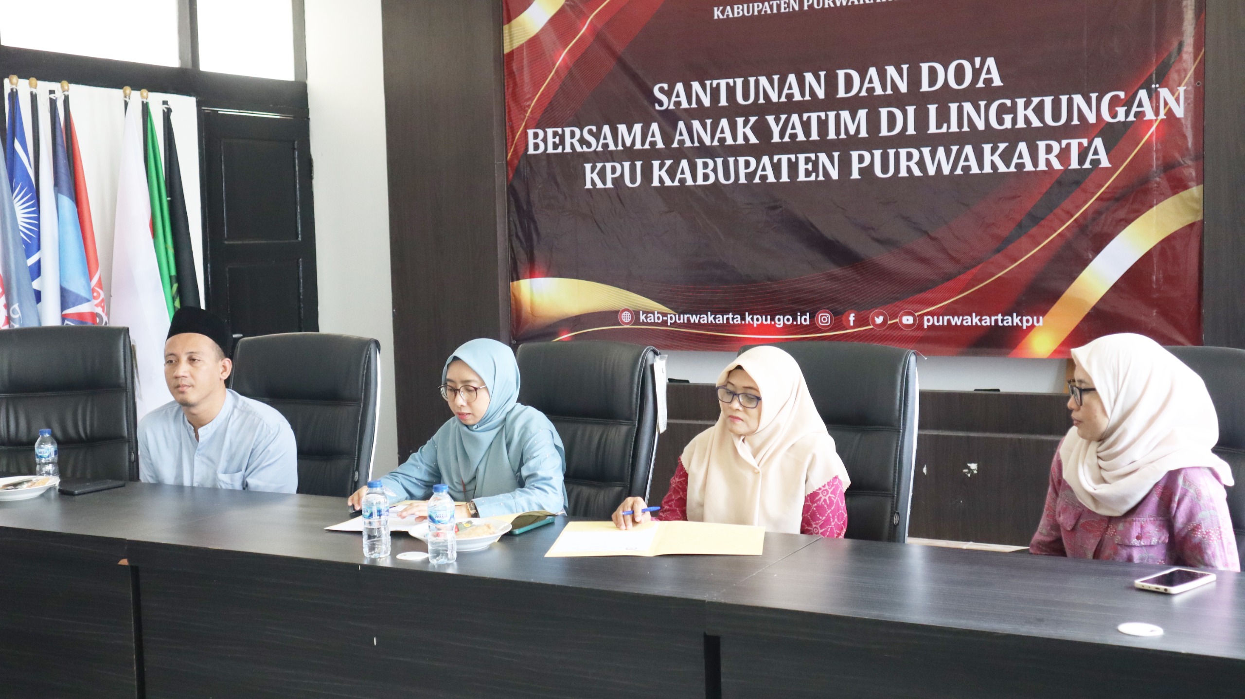 Acara dilanjutkan dengan doa bersama yang dipanjatkan untuk kelancaran tugas serta kesehatan seluruh personil KPU. Setelah itu, dilakukan penyerahan santunan dan bingkisan secara simbolis oleh jajaran struktural Sekretariat KPU Kabupaten Purwakarta kepada para anak yatim.