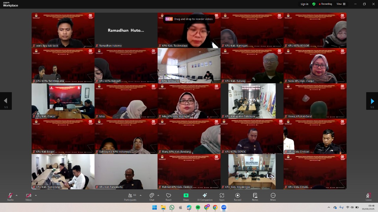 Purwakarta – Komisi Pemilihan Umum (KPU) Kabupaten Purwakarta mengikuti bimbingan teknis penggunaan aplikasi Srikandi dan sosialisasi Peraturan Komisi Pemilihan Umum (PKPU) Nomor 8 Tahun 2021 tentang Tata Naskah Dinas. Kegiatan ini dilaksanakan secara daring melalui Zoom Meeting pada Rabu, 6 Agustus 2025