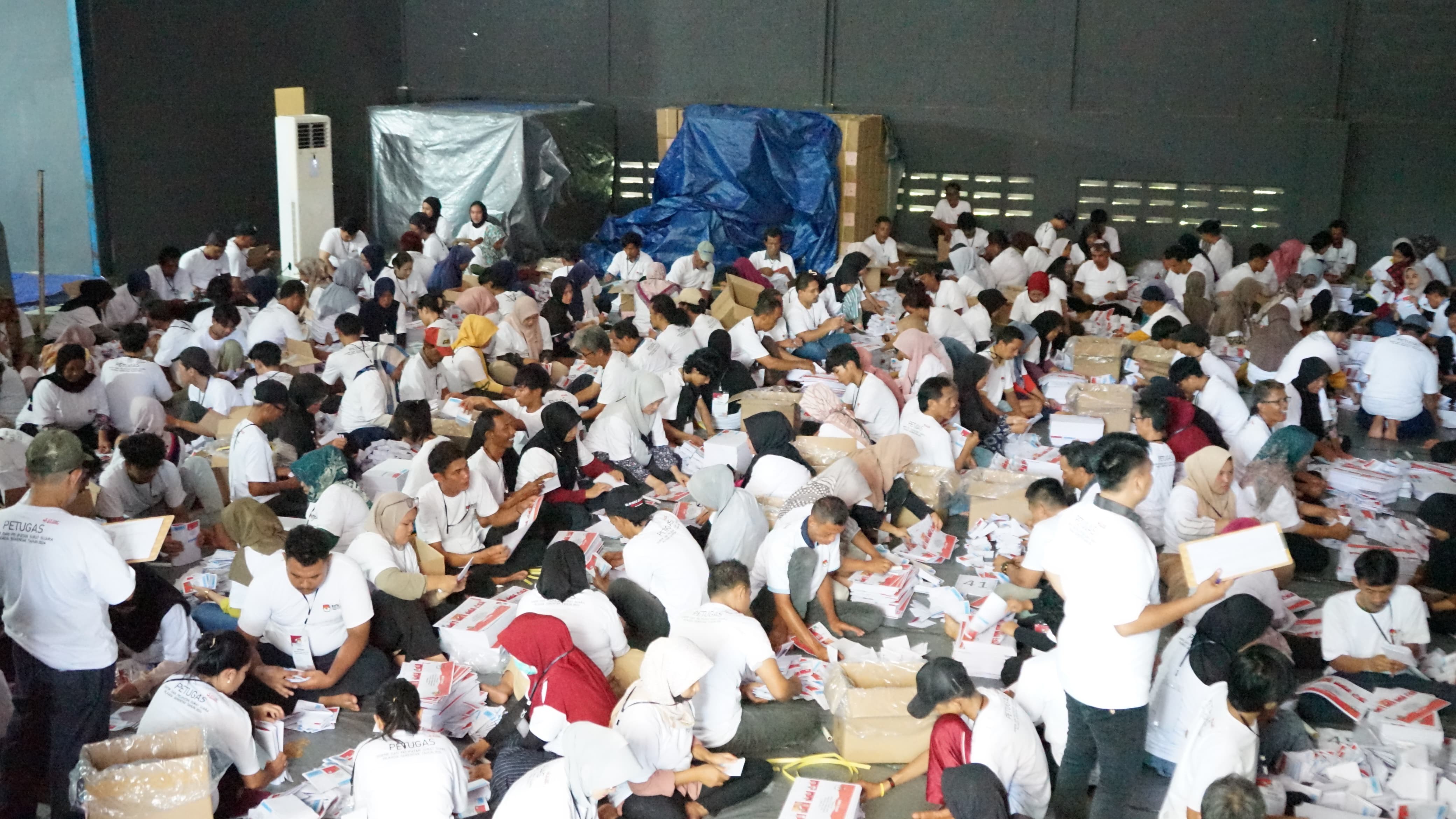 Setiap 20 surat suara yang selesai disortir dan dilipat akan dibungkus dalam satu ikatan, memudahkan distribusi ke setiap TPS.