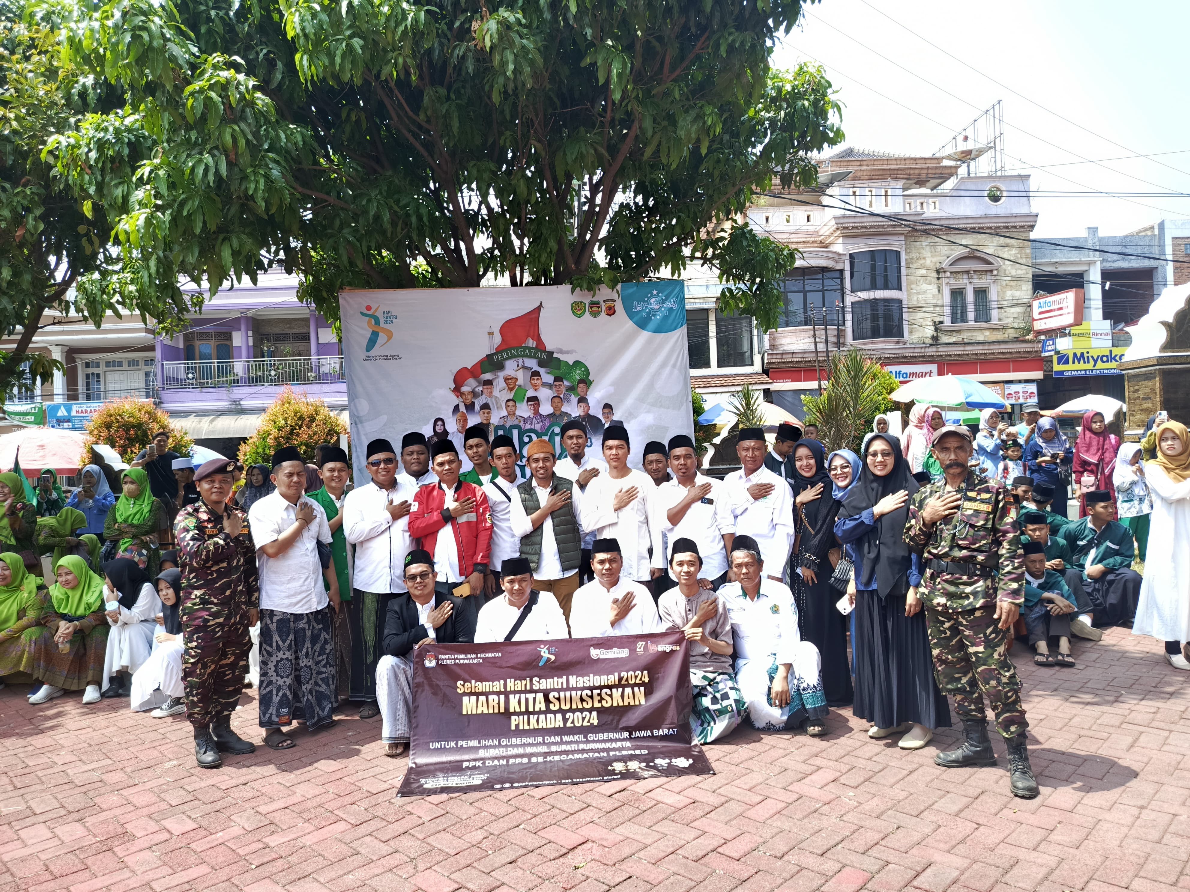 Purwakarta -- KPU Kabupaten Purwakarta hadir di tengah-tengah peringatan Hari Santri Nasional (HSN) tingkat kecamatan Plered, Kamis 24 Oktober 2024.
