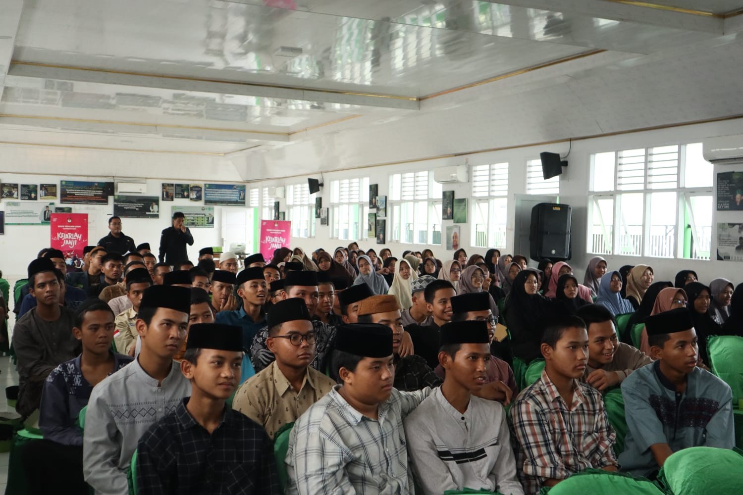 "Kegiatan ini bukan hanya sekedar menonton, melainkan mensosialisasikan serta mendidik anak-anak kami, karena banyak santri pada tanggal 14 Februari 2024 mendatang ada yg sudah punya hak memilih", ujarnya pada sambutan kegiatan nobar Kejarlah Janji (22/10/2023)