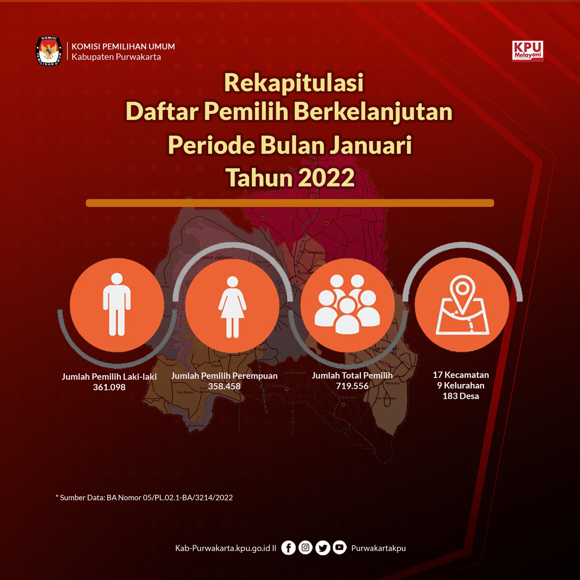 Pada hari ini Senin tanggal Tiga Puluh Satu, bulan Januari, tahun Dua Ribu Dua Puluh Dua, bertempat di Aula KPU Kabupaten Purwakarta, pukul 10.00 WIB, KPU Kabupaten Purwakarta melaksanakan Rapat Koordinasi Bulanan Daftar Pemilih Berkelanjutan periode bulan Januari Tahun 2022 di tingkat KPU Kabupaten Purwakarta. Rapat Koordinasi bulanan dihadiri oleh Ketua dan Anggota KPU.