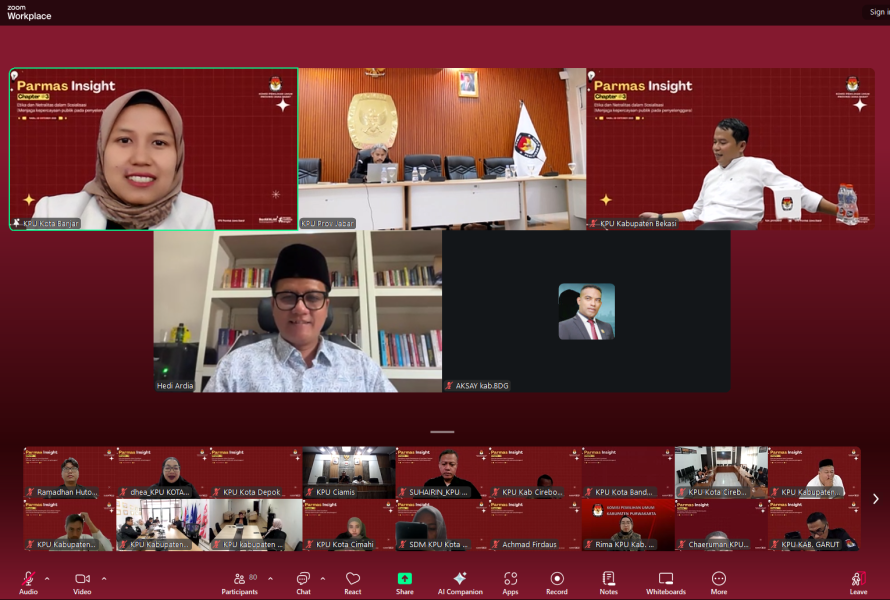 Rakor ini juga menghadirkan sejumlah narasumber dari akademisi yakni Dr. Rafih Sri Wulandari, Ramadhan Pancasilawan, dan Nina Karlina, serta Tenaga Ahli KPU RI, Nanang Indra Suyitno, dan Kepala Badan Kesbangpol Provinsi Jawa Barat, Wahyu Wijaya. Narasumber membahas kepemimpinan adaptif di era transformasi digital, reformasi layanan publik, serta evaluasi tata kelola logistik. Materi juga menyoroti pentingnya digitalisasi administrasi keuangan, manajemen risiko, dan penguatan sistem penyimpanan logistik KPU agar seluruh proses dapat berjalan lebih efisien dan transparan.