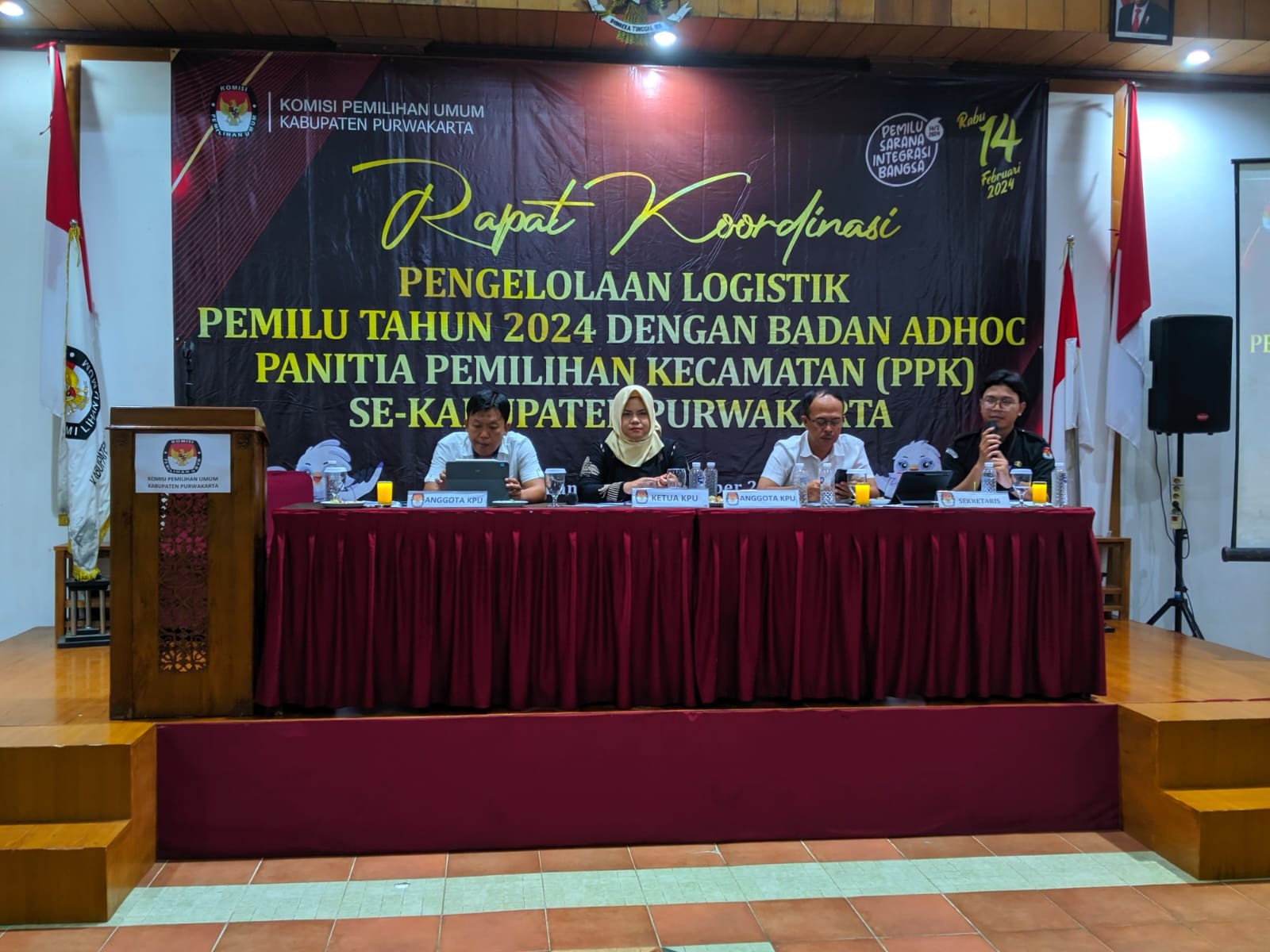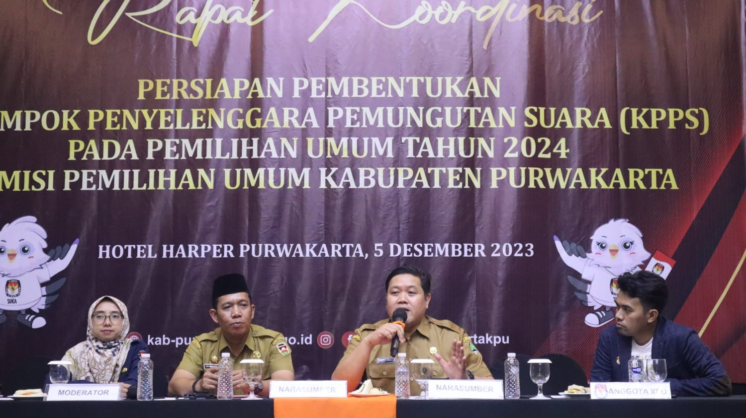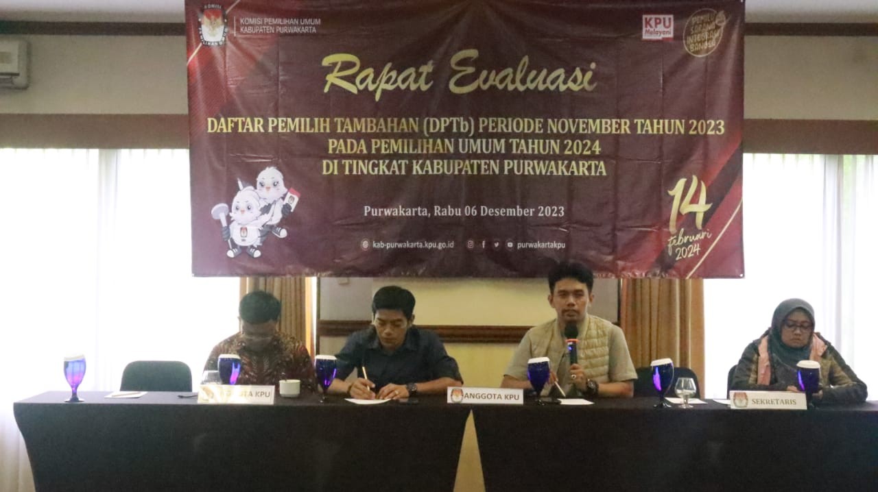 Purwakarta, kab-purwakarta.kpu.go.id – KPU Kabupaten Purwakarta mengadakan rapat evaluasi Penyusunan Daftar Pemilih Tambahan (DPTb) Pemilu Tahun 2024 Periode November 2023 di Tingkat Kabupaten Purwakarta bersama stakeholder, Ketua dan Ketua Divisi Data dan Informasi PPK se-Kabupaten Purwakarta, Rabu, (6/12/2023). Pada sambutan rakor, Oyang Este Binos selaku Kadivsosdiklih dan SDM yang juga mewakili Ketua KPU Kabupaten Purwakarta mengingatkan tahapan yang saat ini sedang berlangsung. “Kembali mengingatkan bahwa saat ini memasuki tahapan kampanye. Hal lain yang perlu diupdate yaitu terkait logistik yang dominan sudah datang dan hanya surat suara yang saat ini masih dalam proses,” kata Binos (6/12/2023). Pada sesi rapat Iip Saripudin Selaku Ketua Divisi Perencanaan Data dan Informasi menyampaikan kegiatan ini sekaligus memastikan pembaruan titik koordinat TPS dan memastikan ketersediaan jaringan internet di seluruh wilayah Kabupaten Purwakarta. “Kegiatan ini selain evaluasi penyusunan DPTb juga sekaligus memastikan pembaruan titik koordinat TPS kepada PPK dan memastikan ketersediaan jaringan internet di seluruh wilayah Kabupaten Purwakarta maka dari itu kita mengundang pihak Diskominfo dan juga stakeholder lainnya.” Ujar Iip (6/12/2023). Sesi rapat, PPK memberikan informasi pembaruan DPTb serta pembaruan titik koordinat TPS. Hal ini penting dilakukan karena beberapa tempat sudah beralih fungsi dan juga pemindahan lokasi TPS yang awalnya di tempat terbuka (halaman, lapangan dan lain-lain) berpindah ke dalam ruangan (indoor). Turut hadir pada kegiatan tersebut, perwakilan Kodim 0619/Purwakarta/ Perwakilan Polres, Ketua Bawaslu Kab. Purwakarta, Kepala Dinas Kependudukan dan Catatan Sipil, perwakilan Diskominfo, perwakilan Kantor Cabang Dinas Pendidikan Wil. 4, perwakilan Kantor Kemenag Purwakarta. (humas kpu pwk PPdrio/foto:Dimas)