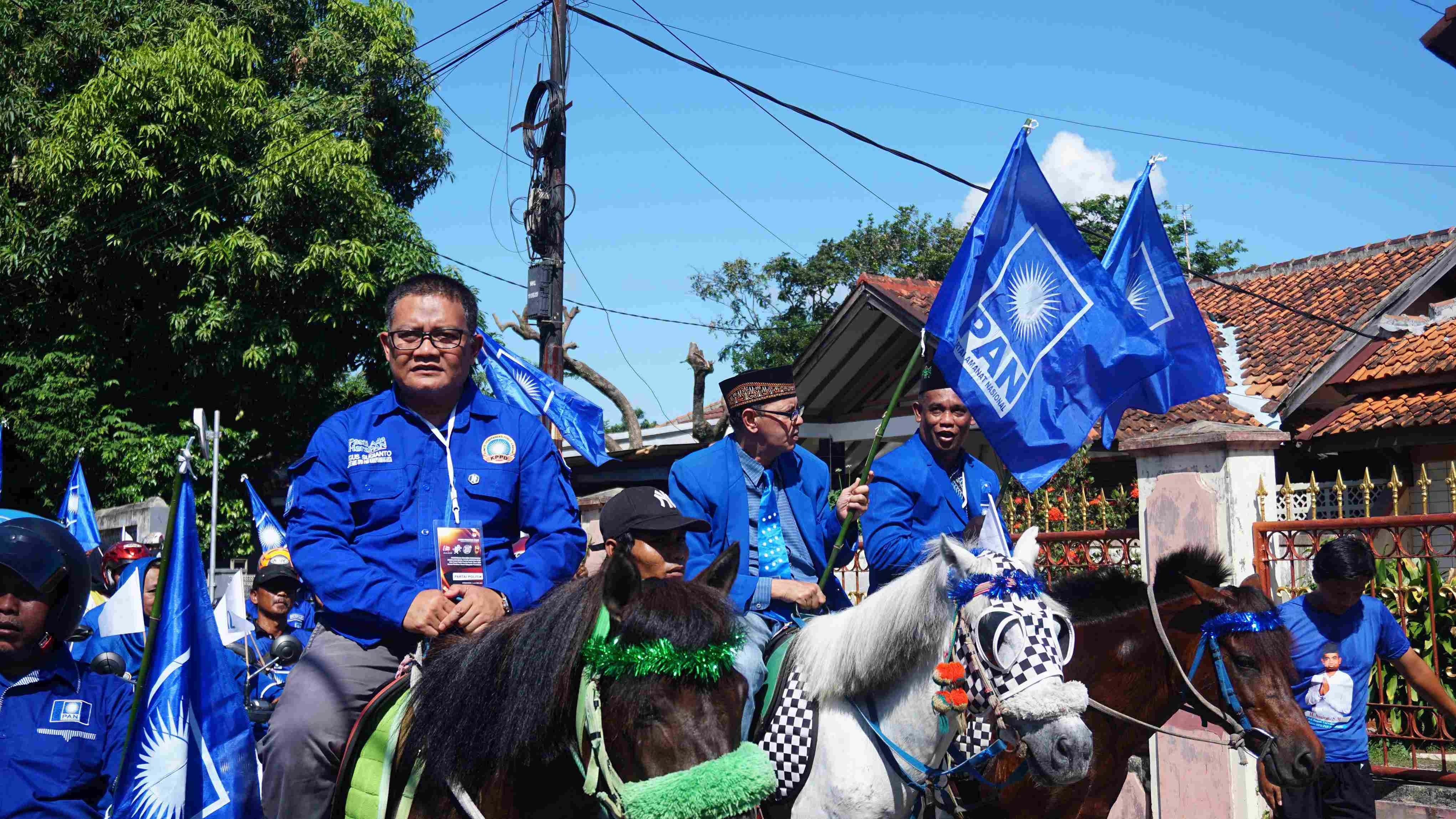 Dengan menaiki kuda, Ketua beserta para pimpinan dan pengurus DPD Partai Amanat Nasional (PAN) tiba di kantor KPU Kabupaten Purwakarta dalam rangka pengajuan bakal calon Anggota DPRD Kabupaten Puwakarta untuk Pemilu Serentak Tahun 2024. Tepat pukul 14.00 WIB pada Jum’at, 12 Mei 2023, Ketua dan Sekretaris DPD PAN Kabupaten Purwakarta mengisi daftar hadir yang telah disediakan oleh KPU Kabupaten Purwakarta. “Harapannya, para Peserta Pemilu 2024 nantinya akan segera mengajukan bakal calon Anggota DPRD ke KPU Kabupaten Purwakarta sehingga dapat tuntas sampai 14 Mei 2023 pukul 23.59 WIB”, tegas Ikhsan, Ketua KPU Kabupaten Purwakarta dalam sambutannya. Lebih lanjut, Ikhsan juga berharap DPD PAN Purwakarta mengajukan bakal calon Anggota DPRD lengkap sebanyak 50 (lima puluh) Bacaleg untuk 6 (enam) dapil di Kabupaten Purwakarta. “1 (satu) kursi untuk 1 (satu) dapil merupakan target perolehan kursi PAN pada Pemilu Tahun 2024”, ujar Haji Aming, Ketua DPD PAN yang juga merupakan Wakil Bupati Purwakarta. Kedepannya, Haji Aming menyatakan DPD PAN Purwakarta siap mengikuti arahan-arahan terkait pengajuan bakal calon Anggota DPRD untuk Pemilu Tahun 2024 sesuai Peraturan KPU yang berlaku.
