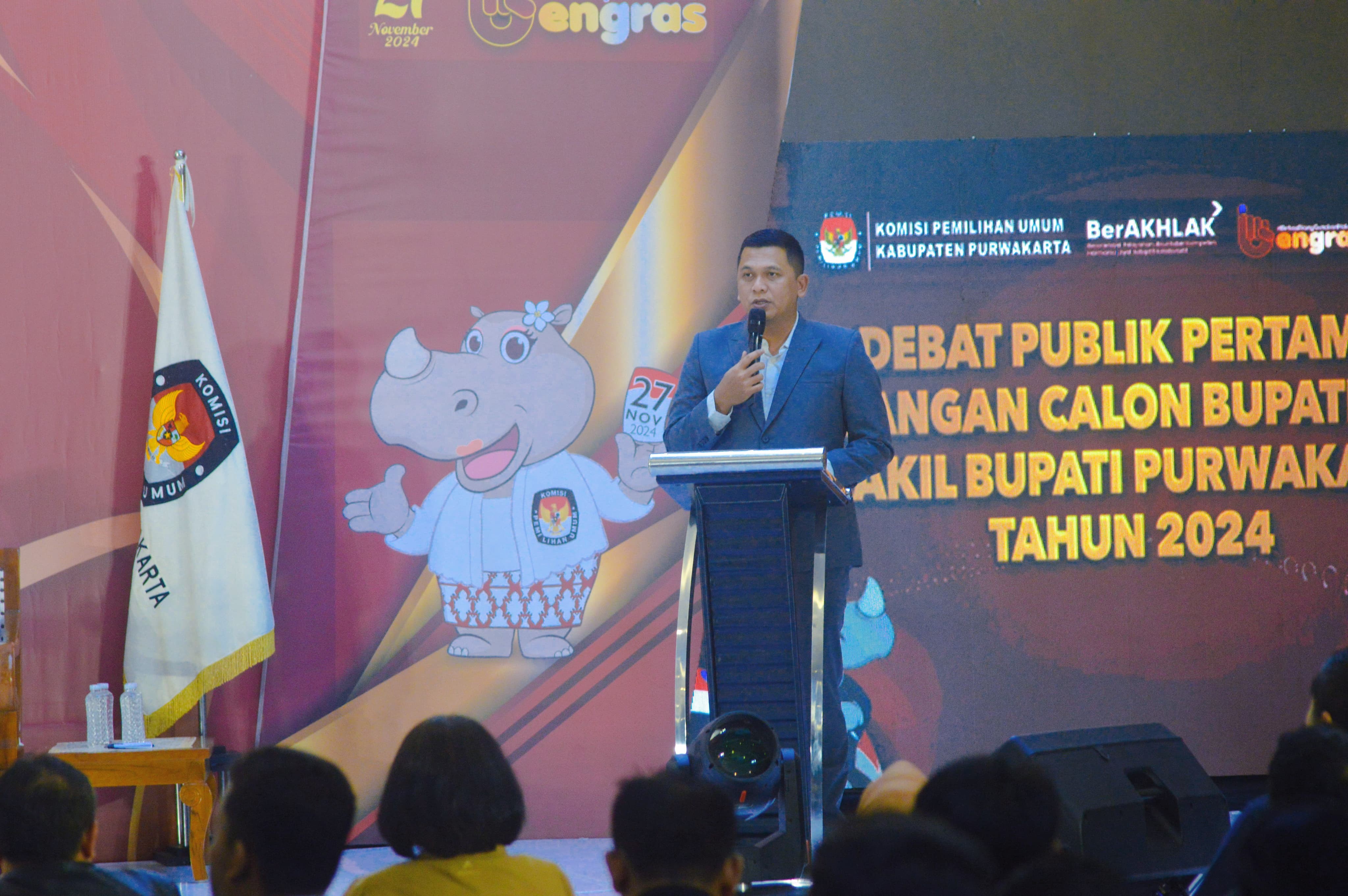 Purwakarta -- KPU Kabupaten Purwakarta mengagendakan debat pertama pasangan calon bupati dan wakil bupati Kabupaten Purwakarta berlangsung di Hotel Harper By Aston, 5 November 2024 sekira pukul 19.00 WIB. Pada debat pertama, KPU mengambil tema "Akselarasi Pembangunan Yang Kompetitif, Berkeadilan dan Berwawasan Lingkungan Untuk Kesejahteraan Masyarakat Purwakarta". "Persiapan debat kita maksimalkan, pada pelaksanaanya berjalan lancar," ungkap Ketua Divisi Sosialisasi, Pendidikan Pemilih, Partisipasi Masyarakat (Sosdiklih Parmas) dan SDM KPU Kabupaten Purwakarta, Oyang Este Binos, Senin 4 November 2024. Ia mengaku terpaksa membatasi jumlah penonton di lokasi debat karena kapasitas tempat tidak memadai untuk menampung dengan jumlah banyak. Masing-masing paslon juga hanya mendapat kuota 30 pendukung yang diizinkan masuk. Sisanya bisa nonton bareng di posko. "Kami berharap semua pihak memaklumi untuk kelancaran bersama," kata pria akrab disapa Binos itu. Selain itu, KPU Kabupaten Purwakarta menganjurkan badan adhoc terdiri Panitia Pemilihan Kecamatan (PPK) dan Panitia Pemungutan Suara (PPS) juga pihak lain nonton bersama di sekretariat masing-masing. "Debat pertama disiarkan secara live di Inews Tv Nasional. Jadi, tidak di lokasi juga bisa nonton bareng di tempat masing-masing" ujar Binos.