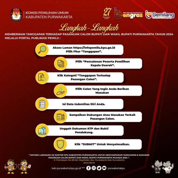 #TemanPemilih Berikut Langkah-langkah Memberikan tanggapan terhadap pasangan calon bupati dan wakil bupati purwakarta tahun 2024, melalui portal publikasi pemilu.