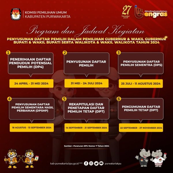 #TemanPemilih Berikut Program dan Jadwal Kegiatan Penyusunan Daftar Pemilih dalam Pemilihan Gubernur dan Wakil Gubernur, Walikota dan Wakil Walikota Tahun 2024.