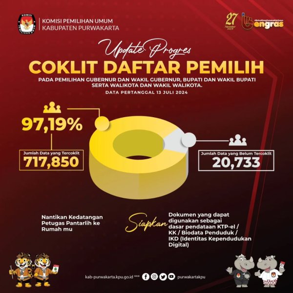 #TemanPemilih berikut update Coklit Daftar Pemilih pada Pemilihan Gubernur dan Wakil Gubernur Jawa Barat, Bupati dan Wakil Bupati Purwakarta tahun 2024, Data pertanggal 13 Juli 2024.