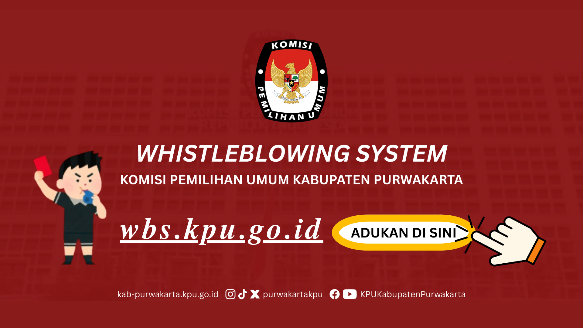 Whistleblowing System (WBS) adalah sistem penanganan pengaduan yang disediakan oleh KPU Kabupaten Purwakarta sebagai sarana resmi bagi pegawai dan pihak terkait untuk menyampaikan informasi atau pengaduan mengenai dugaan pelanggaran, baik Tindak Pidana Korupsi (TPK) maupun Non TPK, yang terjadi di lingkungan KPU.
